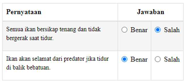 Pilih 'Benar' atau 'Salah' untuk setiap pernyataan.